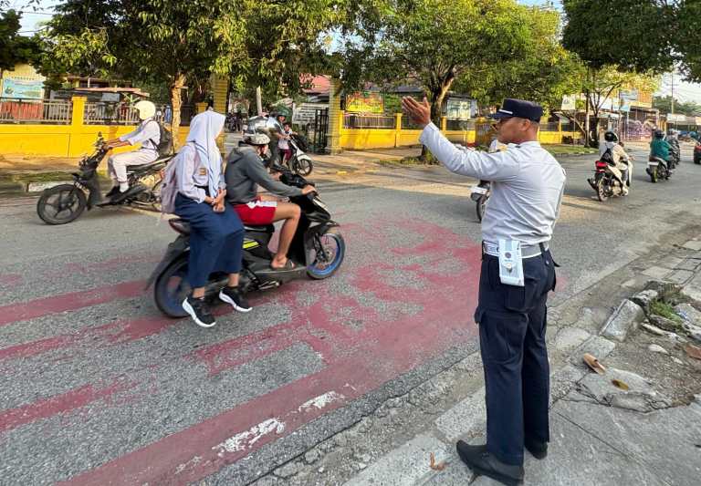Kehadiran personel di lapangan bertujuan untuk mengantisipasi kepadatan lalu lintas akibat meningkatnya volume kendaraan saat mengantar anak ke sekolah.